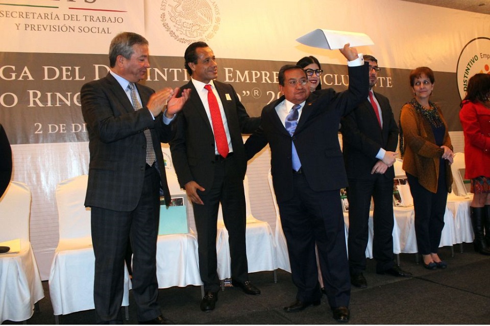 Dicho reconocimiento, otorgado por la Secretaría del Trabajo y Previsión Social (STPS), fue entregado a 449 empresas de 30 entidades federativas, que cuentan con buenas prácticas de inclusión para personas con discapacidad, de la tercera edad, portadores del VIH o con diferente preferencia sexual.