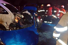 placas MM4918, chocó contra una camioneta Hiace, matrícula G76AEH, y otros dos